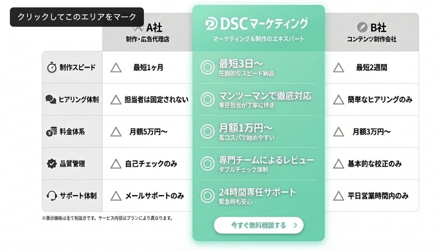 DSCは、自社でも実践できる集客の仕組みを、分かりやすく構築するマーケティング会社です。